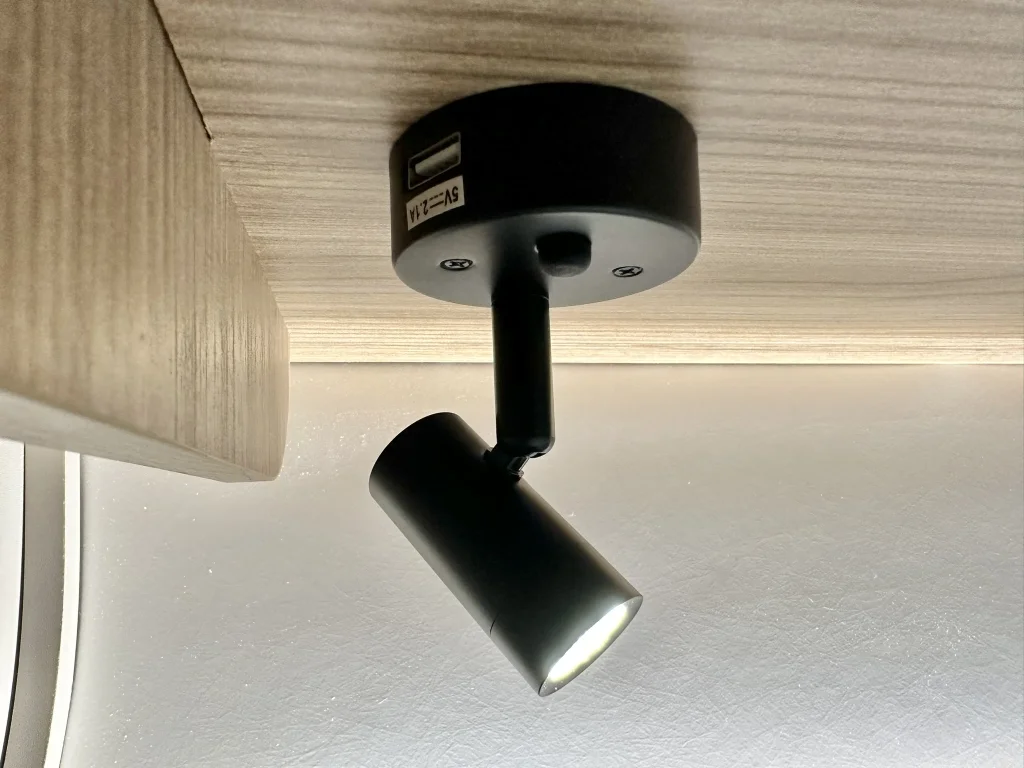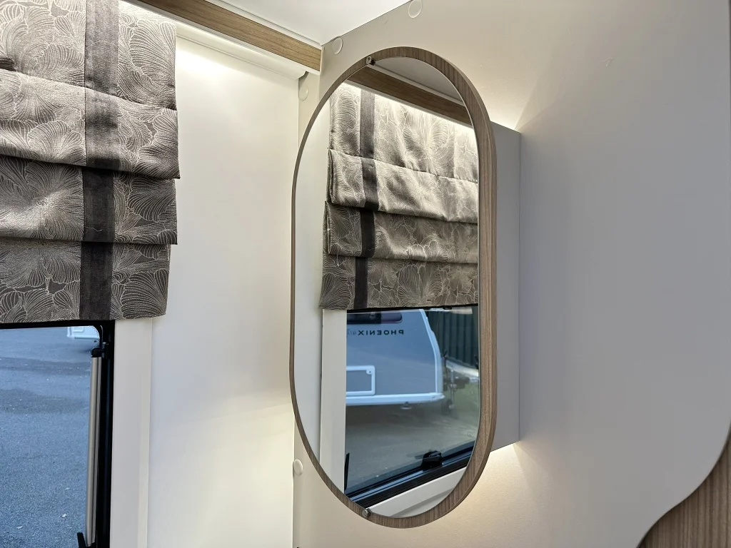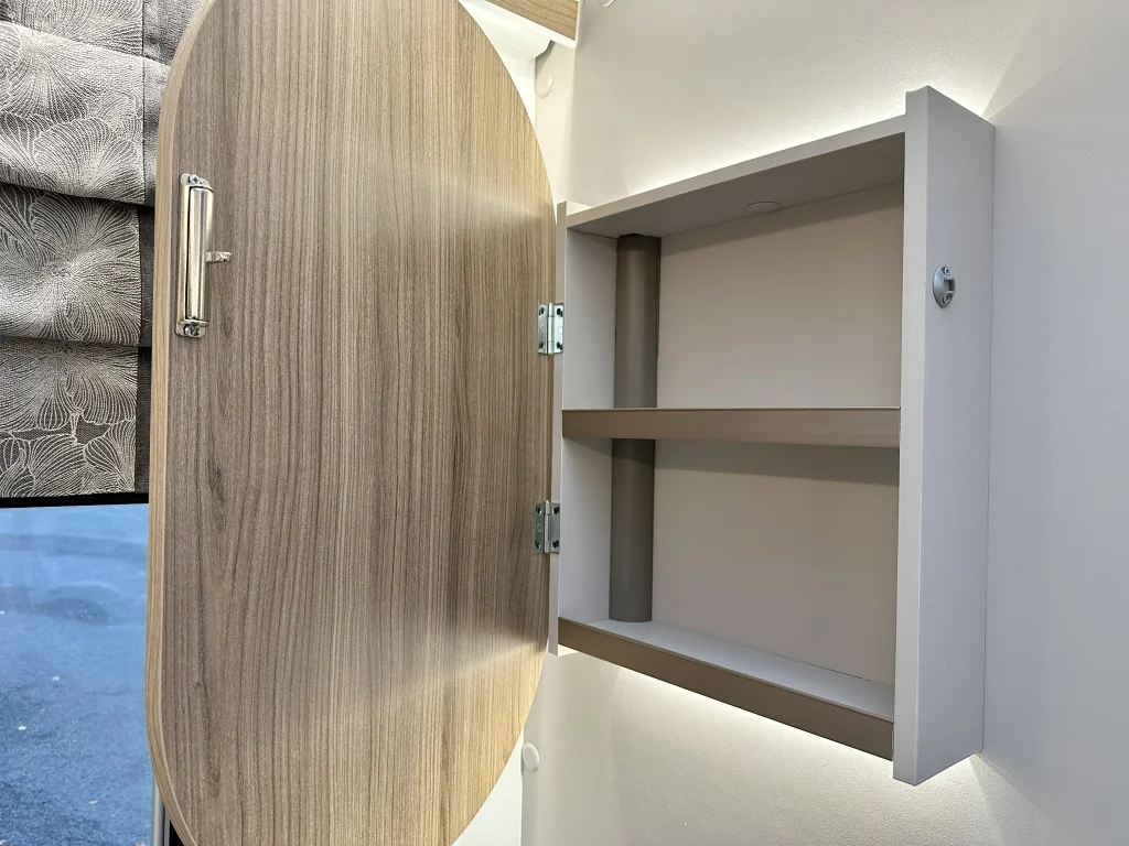 - Bailey ‘Natural Oak’ curved overhead locker doors with ‘Pearl Bronze’ detailing