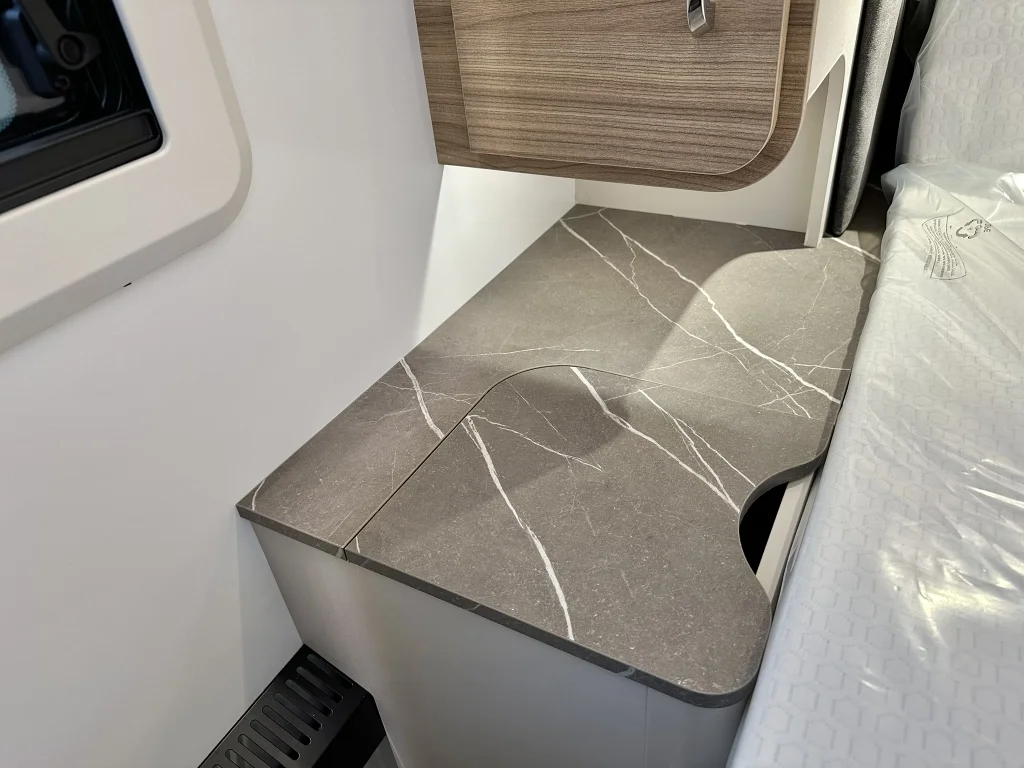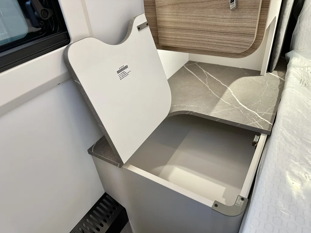 - King-size fixed double island beds with aluminium frames and gas strut assisted opening mechanism