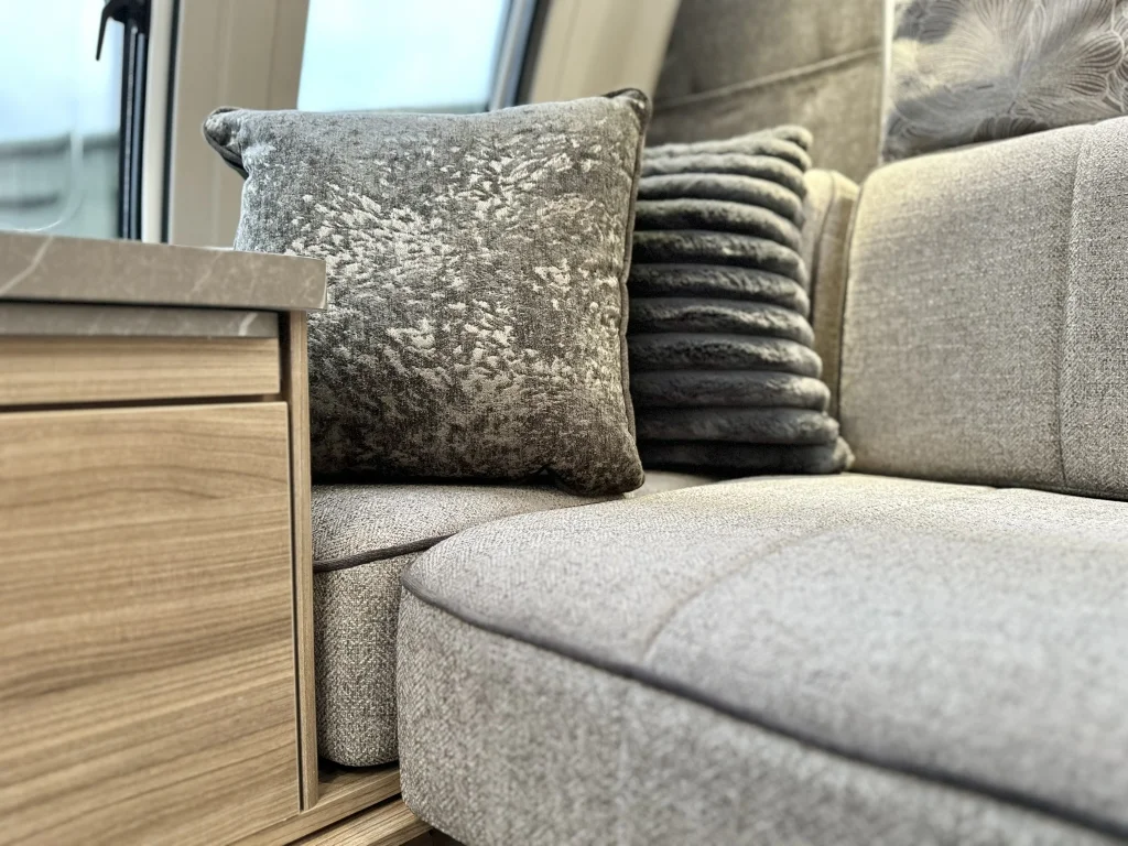 - NEW Optional ‘Jasmine’ soft furnishings with practical Aquaclean fabric with 6 scatter cushions and 2 bolster cushions (cost option)